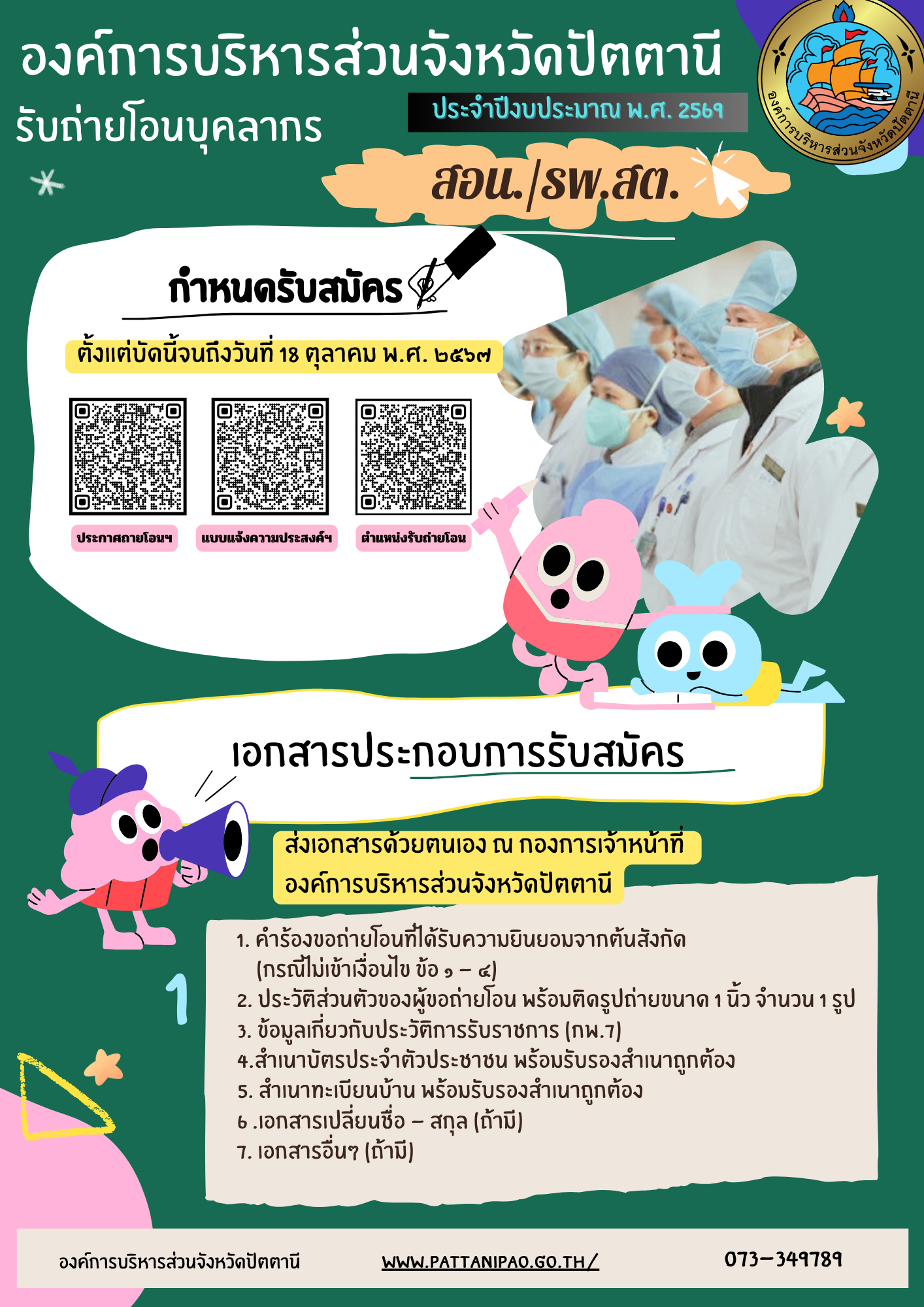 องค์การบริหารส่วนจังหวัดปัตตานี รับถ่ายโอนบุคลากร สนอ. และ รพ.สต. ประจำปีงบประมาณ พ.ศ. 2569